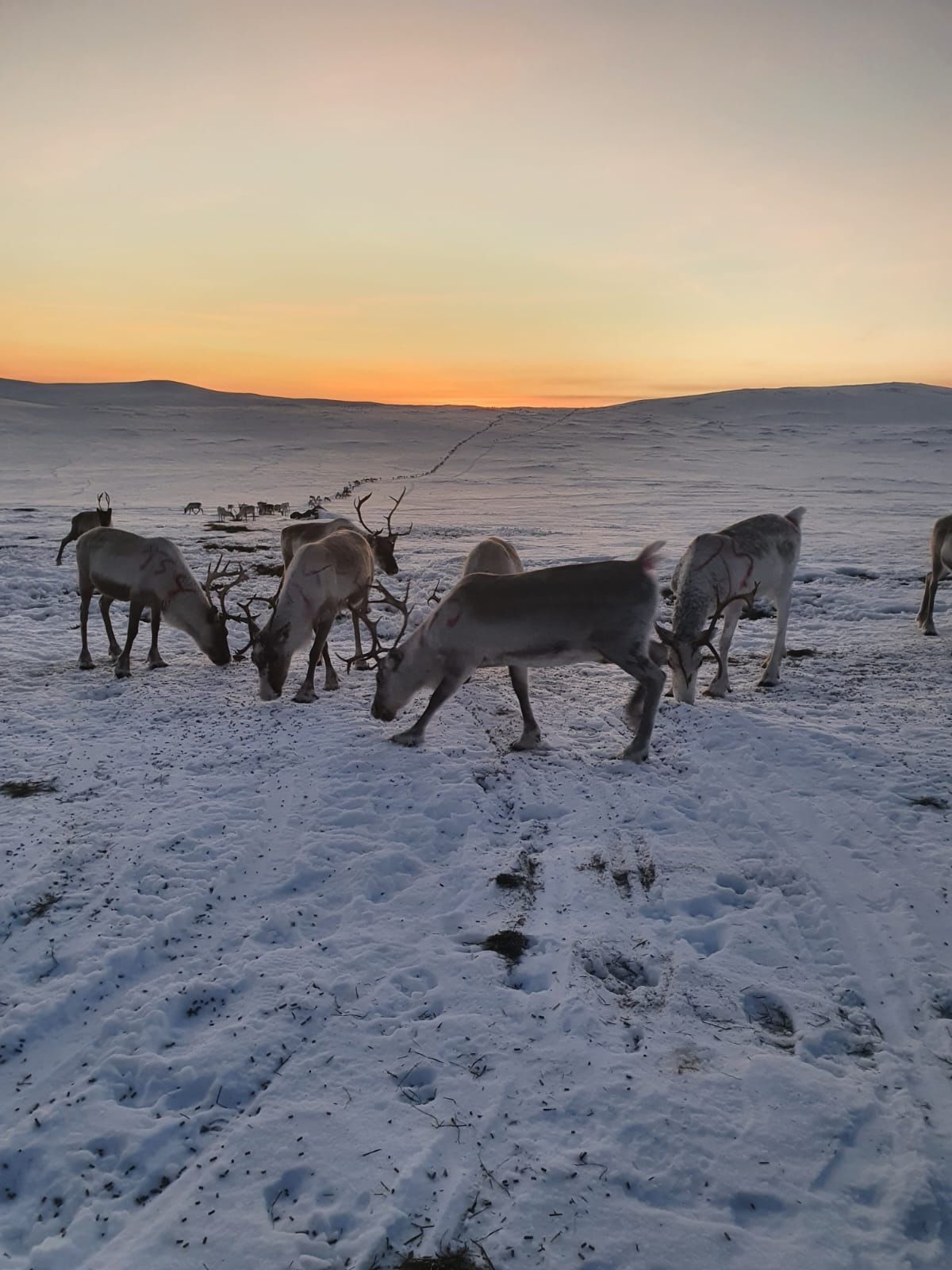 Observing and working with reindeer in the wilderness with their rightful owner, following the natural feeding cycle, is a culturally sustainable tourism program. This program also takes into account the wellbeing of the animals, as the reindeer are not put into captivity for tourism attraction or moved outside their natural grazing lands. This way we make sure our reindeer keep their ability to find food in the wilderness and preserve the instincts they need to escape from predators. We only provide the extra food for a short period of time of the year and our reindeer are not close to people for any longer than is needed for this feeding process.