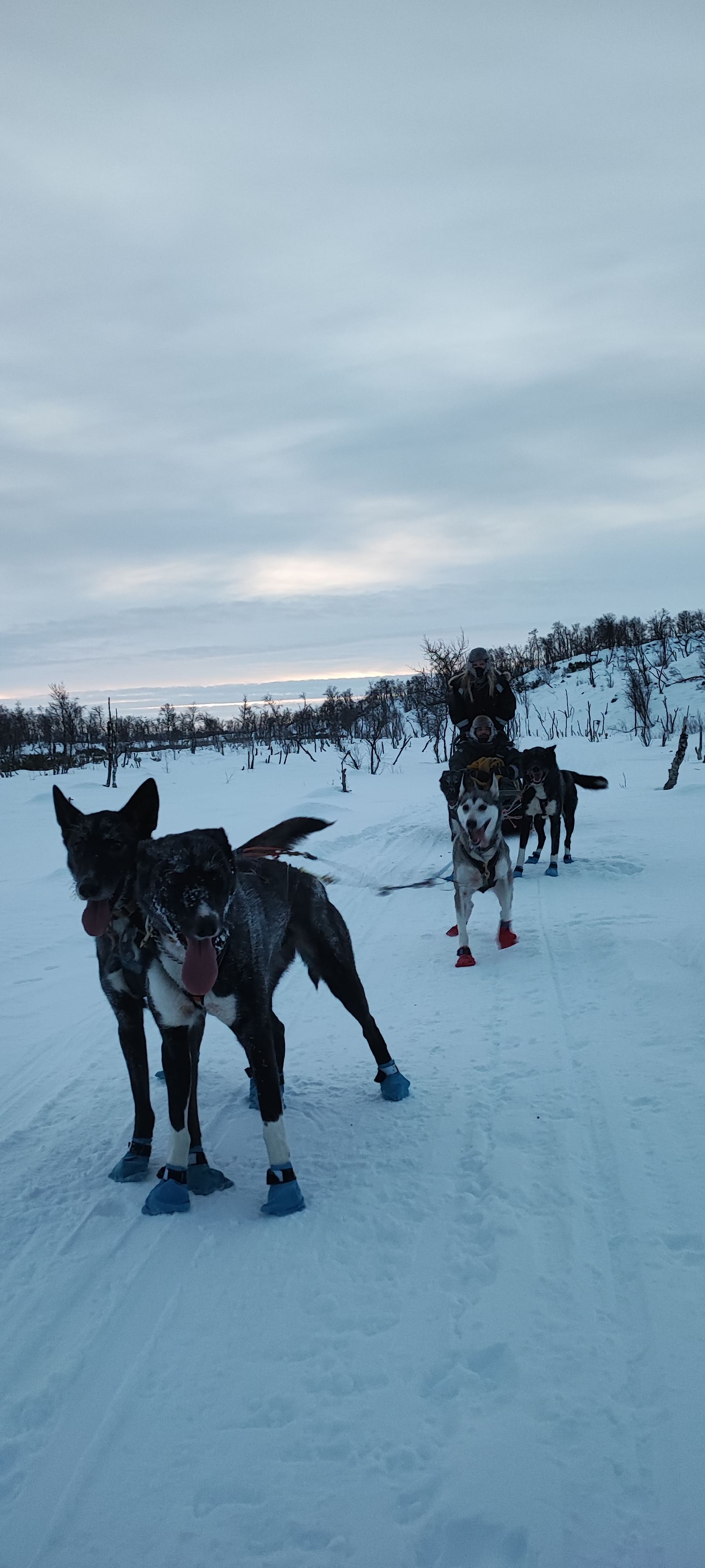 When trying husky sledding as our guest, there is no need to be an expert with dogs – anyone can participate. But it is important to know that the dog sledding is like skiing: you can fall and you can get injured. This is rare, but it can happen if the driver does not control the speed as instructed. Listening to the safety instructions in the beginning is very important.